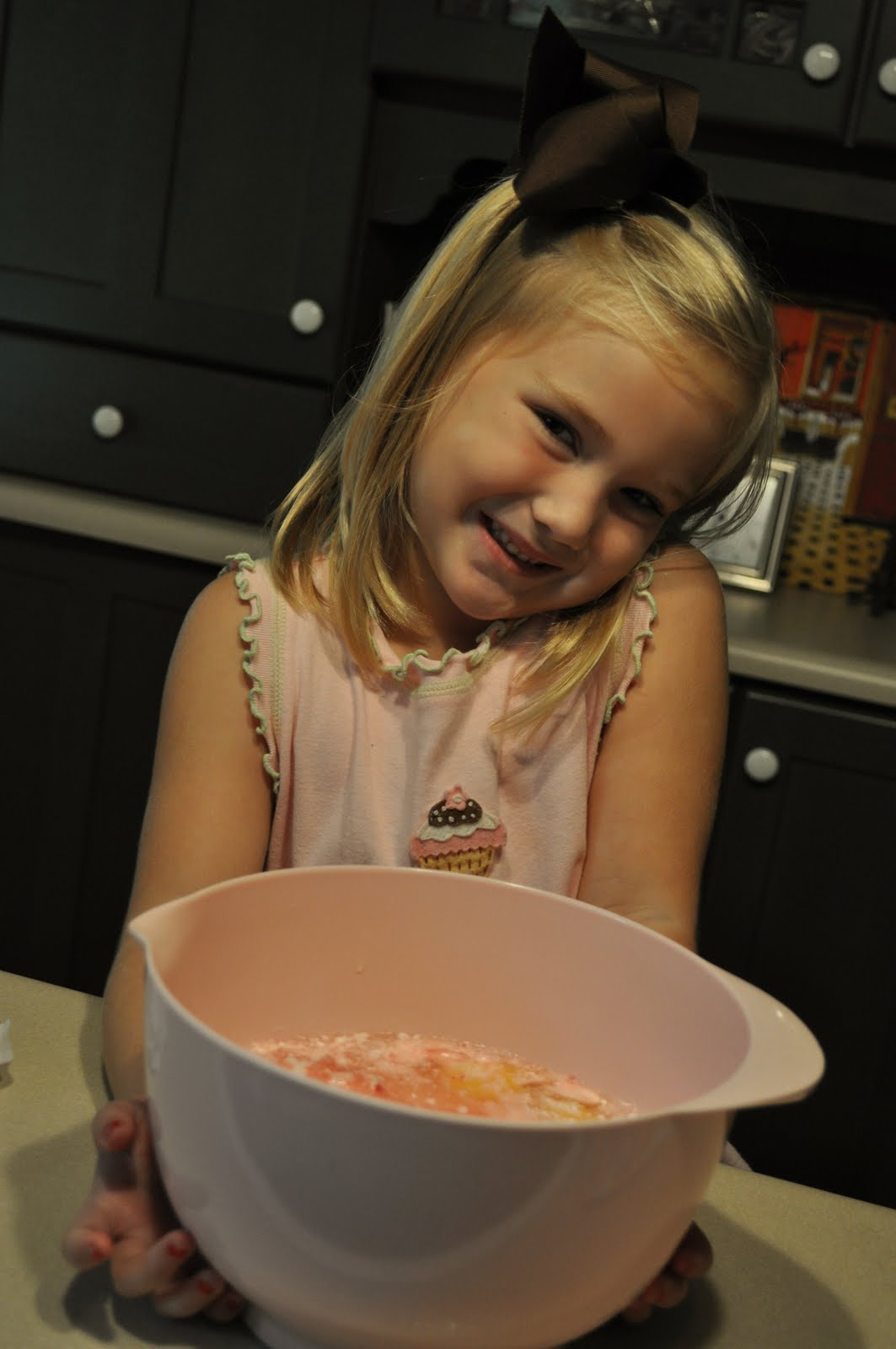Today was a cupcake kind of day. Towns wore cupcakes on her outfit to school which always means we've got to follow suit in the kitchen. Actually, the Davis twins are a year old now and since they haven't had their party yet we're going to celebrate with them tomorrow afternoon (the girls can't wait a second longer). Pink cupcakes made in a pink mixing bowl is naturally the only way to go...
